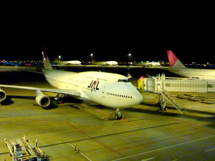 ↑夜9時の便で成田から出発です。