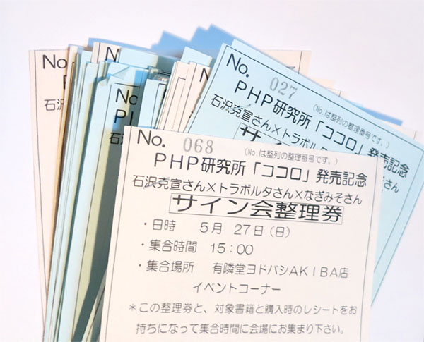 整理券の裏にコメントや絵など描いて下さいまして